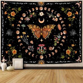 Material: fibra de poliéster (poliéster) Tamanho: 150 cm × 130 cm Peso: 260 g Tema boêmio e celestial: apresenta uma borboleta deslumbrante, luas crescentes e flores vibrantes em um design cósmico, criando uma atmosfera boho mágica para seu quarto. Ideal para decoração boho e vintage: perfeito para adicionar um toque de beleza extravagante e inspirada na natureza ao seu quarto, sala de estar ou dormitório com seu design colorido e exclusivo. Tecido de poliéster de alta qualidade: feita de poliéster durável, esta tapeçaria é macia, leve e fácil de cuidar, garantindo cores vibrantes para uso duradouro. Perfeito para amantes da natureza: o design intrincado com flores, borboletas e luas atrai os amantes da natureza e do espírito, tornando-o uma adição cuidadosa à decoração do quarto. Fácil de pendurar e manter: leve e simples de pendurar com ganchos padrão, lavável à máquina para facilitar a manutenção, mantendo sua tapeçaria fresca e brilhante.