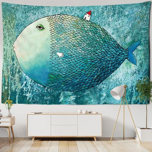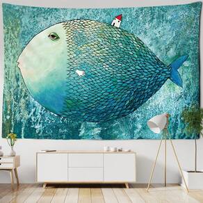 Material: fibra química Tamanho: 150 cm × 130 cm Peso: 200 g Creative Fantasy Design — Apresenta um peixe gigante surreal com uma pequena casa nas costas, misturando elementos oceânicos e oníricos para uma decoração artística de parede exclusiva. Tecido de poliéster durável — Feita de fibra sintética de alta qualidade, esta tapeçaria é leve, lavável e duradoura, perfeita para a decoração do dia a dia. Tapeçaria de parede versátil — Adequada para quartos, salas de estar, dormitórios ou quartos infantis; funciona como decoração artística de parede, pano de fundo ou tecido divertido. Impressão e cores vívidas — A tecnologia de impressão avançada garante tons claros e obras de arte detalhadas, trazendo uma atmosfera extravagante e criativa ao seu espaço. Tamanho conveniente — mede 59 x 51 polegadas (150 x 130 cm), fácil de pendurar, dobrar e armazenar, oferecendo ampla cobertura para paredes pequenas e grandes.