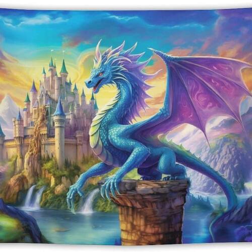 Material: fibra de poliéster (poliéster) Tamanho: 150 cm × 130 cm Peso: 260 g Tema do dragão de conto de fadas: apresenta um dragão azul vibrante com asas roxas guardando um castelo majestoso, criando uma atmosfera mágica e caprichosa. Tecido de poliéster durável: feito de poliéster de alta qualidade, leve, resistente a rugas e fácil de dobrar ou armazenar para uso a longo prazo. Decoração colorida de arte de parede: ilustração de fantasia brilhante e detalhada, perfeita para quartos, dormitórios ou espaços divertidos para crianças. Tamanho ideal: mede 150 cm x 130 cm, adequado para decoração de parede, pano de fundo ou divisória de ambiente, adicionando um toque animado e criativo aos interiores. Fácil de instalar e manter: o design leve facilita a suspensão com ganchos ou tiras adesivas, lavável à máquina para facilitar o cuidado e a reutilização.