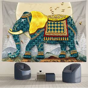 Material: pelúcia curta Tamanho: 150 cm × 130 cm Peso: 305 g Design deslumbrante de elefante com detalhes intrincados em azul e dourado, combinado com um cenário panorâmico de montanha, perfeito para adicionar um toque de elegância a qualquer ambiente. Feito de tecido de poliéster de alta qualidade, garantindo durabilidade, maciez e facilidade de cuidado para uso duradouro. Ideal para decoração de quarto, sala de estar ou dormitório, criando uma atmosfera relaxante e artística. Mede 150x130 cm, tamanho perfeito para a maioria dos espaços de parede, tornando-o uma excelente escolha para qualquer interior. Uma arte de parede versátil e atraente que realça a beleza do seu espaço com suas cores vibrantes e design exclusivo.