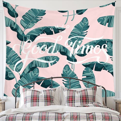 Material: pelúcia curta Tamanho: 150 cm × 130 cm Peso: 290 g Design tropical moderno — apresenta folhas de bananeira verdes ousadas com fundo rosa e tipografia estilosa “Aproveite os bons momentos”, criando uma atmosfera estética moderna. Material de pelúcia macio — Feito de tecido de pelúcia curto, leve e durável, com textura suave e impressão digital vibrante para uma decoração de arte de parede duradoura. Decoração versátil — perfeita para uso como decoração de parede, tapeçaria, colcha, cortina ou pano de fundo para quartos, salas de estar, dormitórios ou estúdios criativos. Fácil de cuidar e pendurar — Bordas reforçadas para maior durabilidade, podem ser penduradas facilmente com clipes, pregos ou ganchos e laváveis à máquina para facilitar a limpeza. Tamanho ideal — Medindo 150 x 130 cm, ideal para cobrir paredes médias a grandes, adicionando um elemento fresco, tropical e motivacional à decoração da sua casa.