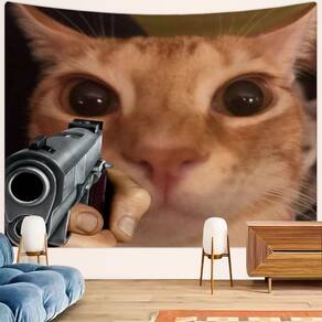 Material: pele de pêssego Tamanho: 150 cm × 130 cm Peso: 260 g Design humorístico de gatos Tapeçaria engraçada com um close-up de um gato de olhos arregalados em estilo meme, criando uma decoração de parede divertida e atraente. Tecido de qualidade premium. Feito de tecido de pele de pêssego, macio, leve e durável, garantindo estampas nítidas e detalhes vibrantes para uma decoração de arte de parede duradoura. Decoração exclusiva Perfeita para quarto, sala de estar, dormitório ou área de entretenimento, trazendo humor e personalidade ao seu espaço na parede. Fácil de pendurar e manter. A tapeçaria leve pode ser pendurada facilmente com ganchos ou clipes; lavável à máquina em um ciclo suave, resistente ao desbotamento e sem rugas. O tamanho ideal mede 150 x 130 cm, grande o suficiente para se destacar como peça central de decoração de parede, ótimo para adicionar uma atmosfera divertida a qualquer ambiente.
