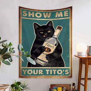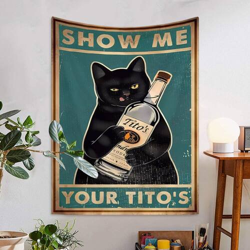 Material: fibra de poliéster (poliéster) Tamanho: 150 cm × 130 cm Peso: 300 g Tapeçaria exclusiva com uma ilustração de gato preto em estilo vintage com design de pôster humorístico, adicionando personalidade divertida a qualquer ambiente. Feito de tecido de poliéster durável com impressão clara de alta definição, leve, macio e fácil de pendurar ou dobrar. Perfeito como tapeçaria de parede, decoração de arte de parede, cortina ou pano de fundo para fins decorativos versáteis. Ótimo para quarto, sala de estar, dormitório, bar ou estúdio criativo, aprimorando uma estética peculiar e retrô. Mede 150x130cm, lavável à máquina, reutilizável e fácil de manter para decoração de longo prazo.
