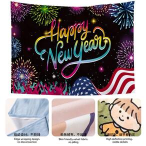 Material: fibra de poliéster (poliéster) Tamanho: 150 cm × 130 cm Peso: 300 g Tema vibrante de Ano Novo — apresenta texto multicolorido de “Feliz Ano Novo”, fogos de artifício festivos e silhuetas animadas da multidão, criando uma atmosfera animada de festa. Decoração multiuso — Pode ser usada como decoração de parede, cenário de festa ou banner festivo para salas de estar, quartos, dormitórios, escritórios ou salões de eventos. Tecido de poliéster durável — Feito de poliéster premium, leve e resistente a rugas, oferecendo cores brilhantes e textura suave para uso duradouro. Fácil de pendurar e manter — Bordas reforçadas e presilhas nos cantos permitem pendurar com facilidade, e o tecido é lavável à máquina para facilitar a limpeza. Perfeito para celebrações — Melhora o clima das festas de Ano Novo, eventos de contagem regressiva e cenários fotográficos, tornando cada reunião memorável.