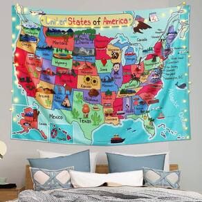 Material: fibra de poliéster (poliéster) Tamanho: 150 cm × 130 cm Peso: 200 g Design interativo de mapas dos EUA: apresenta um mapa colorido e detalhado dos Estados Unidos, com ícones divertidos do estado, perfeito para fins educacionais ou para adicionar um toque divertido a qualquer ambiente. Tecido de poliéster de alta qualidade: feita de poliéster macio e durável, esta tapeçaria oferece cores vibrantes, durabilidade duradoura e fácil manutenção. Perfeito para crianças e adultos: ideal para quartos infantis, salas de aula, dormitórios ou qualquer espaço que queira adicionar uma peça de decoração de parede vibrante e educacional. Ilustrações brilhantes e divertidas: cada estado é destacado com imagens únicas e divertidas que representam sua cultura e pontos turísticos, tornando a geografia atraente para todas as idades. Fácil de pendurar e cuidar: leve, fácil de pendurar com ganchos ou hastes simples. Lavável na máquina para facilitar a limpeza.