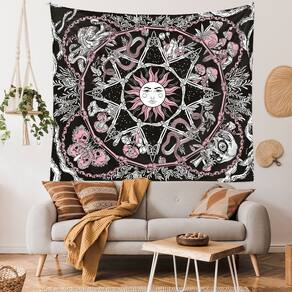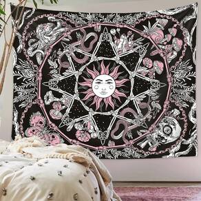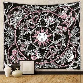 Material: flanela Tamanho: 130 cm × 150 cm Peso: 290 g Tapeçaria deslumbrante com design de sol e lua cercada por rosas, cobras e símbolos místicos, criando uma atmosfera celestial encantadora. O esquema de cores preto e rosa adiciona um toque ousado e elegante, perfeito para temas de decoração boho, gótica ou mística. Ideal para pendurar em quartos, salas de estar, dormitórios ou qualquer espaço que precise de um ponto focal místico e artístico. Feito com tecido de alta qualidade, garantindo cores vibrantes e durabilidade para uso duradouro. Dimensões: 59 x 39 polegadas, perfeito para grandes espaços de parede para causar um impacto visual dramático.