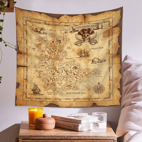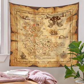 Material: flanela Tamanho: 130 cm × 150 cm Peso: 290 g Tapeçaria de mapas do tesouro pirata em estilo vintage com detalhes intrincados, caveira de pirata, navios e marcas X, criando uma atmosfera aventureira e extravagante. Perfeito para entusiastas de piratas, aventureiros ou qualquer pessoa que queira adicionar um toque náutico ou fantástico à decoração de sua casa. O tecido de alta qualidade garante cores vibrantes, durabilidade e um toque suave, tornando-o um excelente complemento para quartos, salas de estar ou festas temáticas. Dimensões: 59 x 39 polegadas, ideal para grandes espaços de parede e fácil de pendurar para cenários fotográficos ou decoração de quartos. Uma peça de decoração de parede divertida e emocionante para quartos infantis, festas temáticas ou qualquer espaço que precise de um toque ousado e criativo.