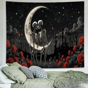 Material: Pele de pêssego Tamanho: 150 cm × 130 cm Peso: 260 A obra de arte gótica romântica retrata dois amantes de esqueletos sob uma lua crescente cercada por rosas vermelhas e estrelas, criando uma decoração de arte de parede misteriosa e assustadoramente romântica. Tecido de pele de pêssego premium Feito de tecido macio de pele de pêssego, leve e durável, com textura suave e estampa vívida para uma decoração duradoura. Tapeçaria de parede versátil Perfeita para quarto, sala de estar, dormitório ou estúdio, esta tapeçaria gótica adiciona uma vibração dramática e estética aos seus interiores. Fácil de pendurar e manter Resistente a rugas, leve e fácil de instalar com ganchos ou pregos, lavável à máquina para facilitar a limpeza. O tamanho padrão mede 150 x 130 cm, adequado como decoração de parede, pano de fundo, divisória de quarto ou suspensão de teto, aprimorando seu espaço com romance gótico.
