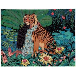Material: fibra de poliéster (poliéster) Tamanho: 150 cm × 130 cm Peso: 260 g Arte exclusiva da selva: apresenta um design impressionante de um tigre com uma garota em um vestido floral cercado por folhas exuberantes e flores desabrochando, adicionando um toque exótico e artístico a qualquer parede. Tecido de poliéster durável: feito de material de poliéster leve e forte, com tecnologia de impressão vívida que resiste ao desbotamento e mantém as cores brilhantes. Tapeçaria de parede versátil: perfeita como tapeçaria, tapeçaria, pano de fundo ou decoração para quartos, salas de estar, dormitórios ou espaços criativos. Fácil de instalar e manter: o design leve permite pendurar facilmente com ganchos ou pregos. Lavável à máquina em um ciclo suave, resistente a rugas e de secagem rápida. Tamanho decorativo ideal: mede 150 x 130 cm, tornando-o adequado para áreas de parede de médio a grande porte, criando uma peça central ousada para a decoração de sua casa.