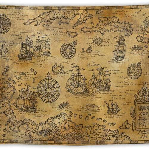 Material: fibra de poliéster (poliéster) Tamanho: 150 cm × 130 cm Peso: 260 g Design intrincado de mapa do tesouro pirata vintage com veleiros, bússolas e elementos náuticos para uma atmosfera histórica e aventureira Feito de tecido de poliéster durável, fornecendo uma textura suave e uma impressão vívida para uso duradouro Tamanho ideal (59 x 51 polegadas) para criar um ponto focal impressionante em salas de estar, quartos ou escritórios Um complemento perfeito para piratas ou decoração com tema marítimo, oferecendo um toque de aventura e história ao seu espaço Leve, com 260 g, fácil de pendurar e manter decoração de parede sem esforço