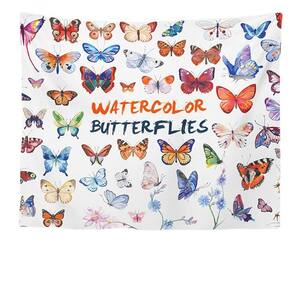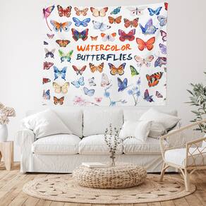 Tapeçaria, parede de borboletas em aquarela, 150x100cm, microtecido