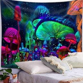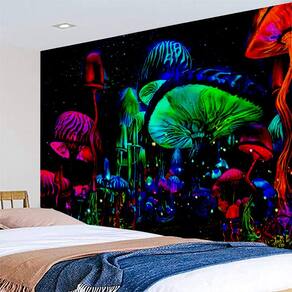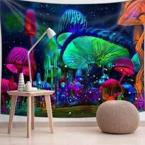 Tapeçaria, parede fluorescente de cogumelos, 150x130cm, microtecido