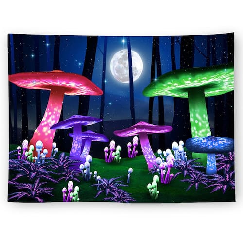 Tapeçaria, parede fluorescente de cogumelos, 150x150cm, microtecido