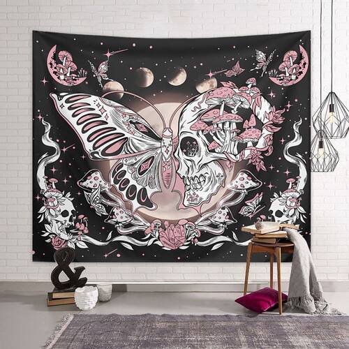 Material: pelúcia curta Tamanho: 150 cm × 130 cm Peso: 300 g Arte gótica fantástica — apresenta uma borboleta se fundindo com uma caveira, cercada por luas, cogumelos e detalhes florais, criando uma decoração de parede mística e ousada. Tecido de pelúcia de alta qualidade — Feito de material macio de pelúcia curto que é durável, resistente a rugas e garante uma impressão nítida com cores vivas. Uso versátil — Perfeito como decoração artística de parede, divisória de quarto, cobertura de teto ou cenário fotográfico para quartos, dormitórios e apartamentos modernos em estilo gótico. Fácil de pendurar e manter — o tecido leve permite pendurar facilmente com ganchos, clipes ou pregos; lavável à máquina em um ciclo delicado para uso prolongado. Tamanho decorativo grande — mede 150 x 130 cm, proporcionando excelente cobertura de parede e sendo uma peça central impressionante em qualquer ambiente.