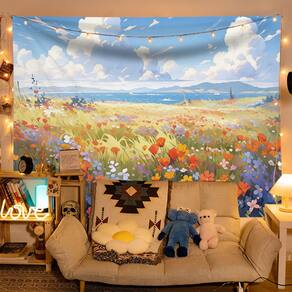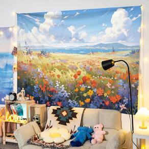 Material: pelúcia Tamanho: 150 cm × 130 cm Peso: 292 g Design paisagístico da natureza: com um campo vibrante de flores silvestres sob um céu azul brilhante com nuvens fofas, esta tapeçaria traz uma vista externa refrescante para seu espaço interno. Tecido macio e durável: feito de pelúcia de poliéster leve e de alta qualidade com um toque suave, garantindo uso duradouro e impressão em cores vivas. Tapeçaria de parede multiuso: funciona perfeitamente como decoração de arte de parede, colcha, capa de janela, manta de sofá, cortina ou fundo fotográfico para uma decoração versátil. Fácil de pendurar e manter: bordas reforçadas para maior durabilidade, podem ser penduradas com ganchos, pregos ou tiras adesivas; lavável à máquina para facilitar a limpeza. Aprimoramento ideal do quarto: perfeito para quartos, salas de estar, dormitórios ou estúdios, criando uma atmosfera aconchegante e artística com sua paisagem floral colorida.