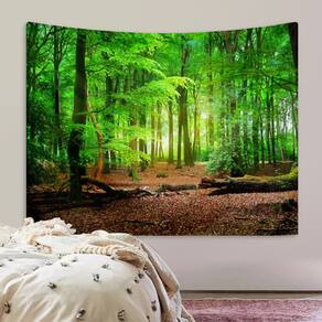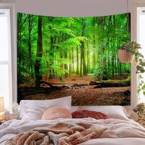 Material: pelúcia curta Tamanho: 150 cm × 130 cm Peso: 300 g Ively Nature Scene — Apresenta uma paisagem florestal verdejante com a luz do sol fluindo pelas árvores, trazendo uma atmosfera fresca ao ar livre para sua casa. Tecido de veludo macio — Feito de material de pelúcia curto premium, garantindo cores vivas, textura suave e durabilidade para uso a longo prazo. Versátil Home Accent — Funciona como decoração de parede, colcha de cama, manta de sofá, cortina ou pano de fundo fotográfico, adicionando charme natural a qualquer espaço. Fácil instalação — A tapeçaria leve é simples de pendurar usando alfinetes, pregos ou ganchos adesivos; fácil de dobrar e guardar quando não estiver em uso. Decoração de quarto perfeita — Ótima para quartos, salas de estar, dormitórios, cantos de meditação ou estúdios criativos, aprimorando seu interior com uma atmosfera tranquila na floresta.