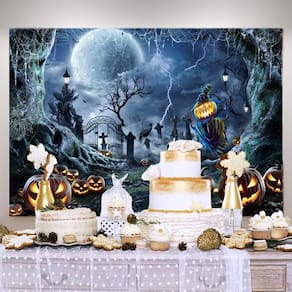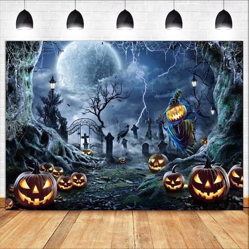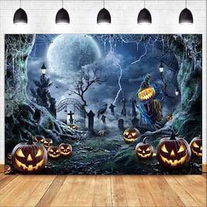 Material: vinil Tamanho: 150 cm × 100 cm Peso: 150 g Design assustador de cemitério — apresenta árvores retorcidas, lanternas brilhantes, portões de cemitério, corvos e um espantalho ameaçador sob a lua cheia, perfeito para o ambiente de Halloween. Material de vinil de alta qualidade — O tecido de vinil macio, leve e resistente a rasgos o torna durável e fácil de limpar, adequado para decoração sazonal e uso repetido. Cenário de festa perfeito — Ideal para festas de Halloween, casas mal-assombradas e configurações de doces ou travessuras, criando um fundo fotográfico arrepiante para os convidados. Fácil de pendurar e armazenar — Pode ser montado rapidamente usando ganchos, clipes ou fita adesiva e se dobra de forma compacta para facilitar o armazenamento e a reutilização a cada Halloween. Tamanho padrão 150x100cm — Grande o suficiente para cobrir sua parede e criar um efeito assombrado envolvente, ótimo para decoração de interiores ou adereços fotográficos.