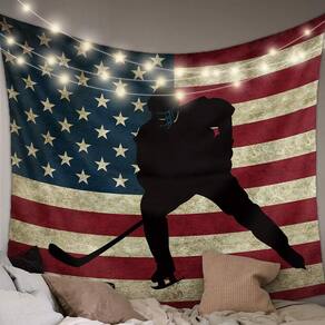 Material: fibra química Tamanho: 150 cm × 130 cm Peso: 200 g Design ousado de hóquei no gelo — Apresenta a silhueta impressionante de um jogador de hóquei contra o fundo da bandeira americana, trazendo energia esportiva dinâmica à decoração de sua parede. Patriótico e elegante — combina esportes de inverno com uma estampa de bandeira vintage, perfeita para fãs de hóquei que querem mostrar paixão pelo jogo e amor pelo espírito nacional. Decoração artística de parede versátil — ideal como tapeçaria, colcha, pano de fundo, cortina ou exibição criativa em quartos, salas de estar, salas de jogos ou dormitórios. Cobertura de tamanho grande — mede 150 x 130 cm (59 x 51 polegadas), cobrindo facilmente grandes áreas de parede e criando uma atmosfera decorativa atraente em qualquer ambiente. Durável e fácil de cuidar — Feito de tecido leve de poliéster, resistente a rugas, dobrável e lavável à máquina para manutenção conveniente e uso a longo prazo.
