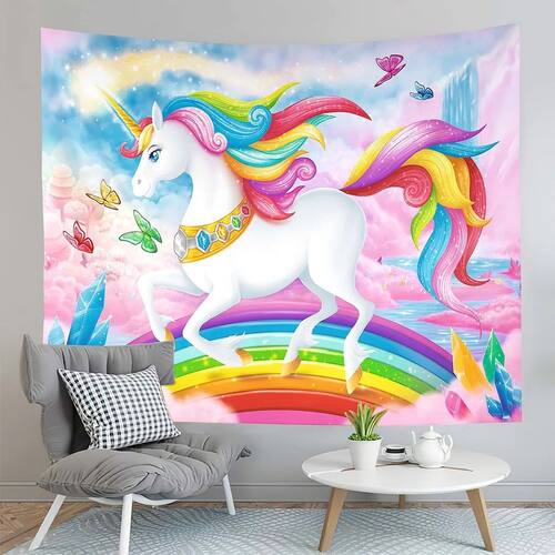 Tapeçaria Rainbow Unicorn Wall 150x100cm de fibra de poliéster