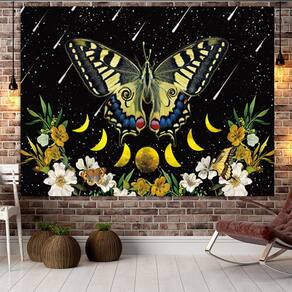 Tapeçaria: Sol e lua, parede de borboletas, 150x130cm, microtecido
