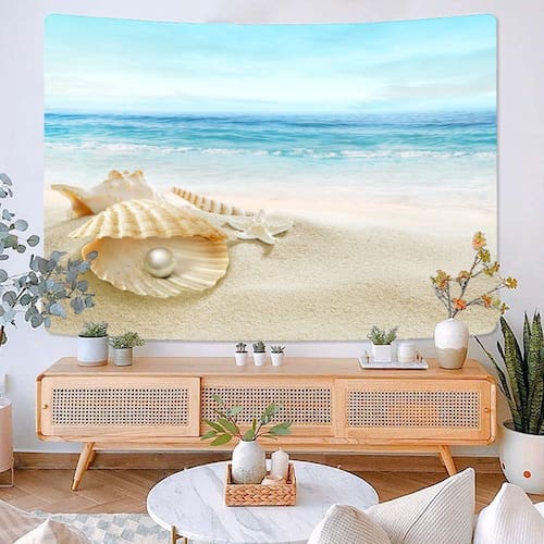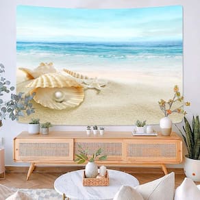 Tapeçaria Sunrise Shell Seaside Wall 150x130cm em microtecido