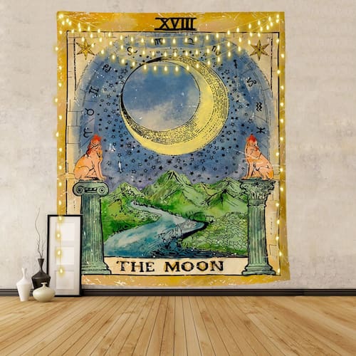 Tamanho: 100x150cm Peso: 110g Material: poliéster Embalagem: 1 x TapestryMystical Tarot Design: Com um design encantador inspirado nas cartas de tarô, esta tapeçaria mostra um lobo sentado ao lado da lua crescente com estrelas acima. Um elemento cativante e mágico para qualquer cômodo da sua casa. Tecido de alta qualidade: feita de 100% poliéster, esta tapeçaria é macia ao toque, durável e fácil de manter. O tecido mantém suas cores vibrantes, mesmo após várias lavagens, tornando-o perfeito para uso duradouro. Perfeita para qualquer ambiente: esta tapeçaria deslumbrante pode ser usada para aprimorar seu quarto, sala de estar ou qualquer espaço onde você queira adicionar uma vibração mística. Seu design arrojado e esquema de cores exclusivo o tornam uma peça central ideal para qualquer decoração de ambiente. Fácil de pendurar: a tapeçaria vem sem moldura e é leve, o que a torna simples de pendurar com tachas decorativas ou alfinetes. Sua natureza dobrável também facilita o armazenamento quando não está em uso, oferecendo versatilidade. Uma ótima ideia de presente: com seu design etéreo, esta tapeçaria é um presente perfeito para quem aprecia tarô, astrologia ou arte mística. É um excelente presente para aniversários, boas-vindas ou qualquer ocasião especial.