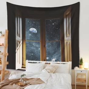 Tapeçaria, vista noturna da janela, microtecido 150x130cm