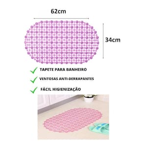 Tapete Antiderrapante Banheiro Box Chuveiro Ventosa 60X40 - Rosa