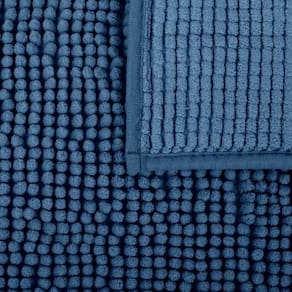 Microfibra, muito macias, causando a sensação de um toque extremamente macio e super absorvente. Além disso, em sua base possui antiderrapante que fixa no piso, trazendo segurança, conforto e beleza ao seu ambiente.