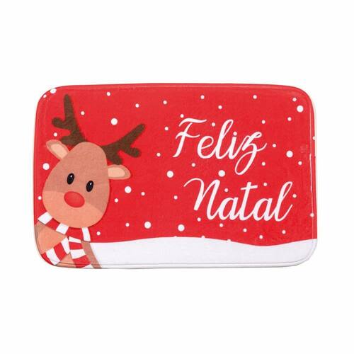 Tapete Antideslizante Com Estampa Rena Feliz Natal - Composição/Matéria Prima - 80% Poliéster 20% PVC - Cor Predominante - Vermelha - Cod. Cromus - 1351700 - Instruções Adicionais e Limpeza - Limpar com aspirador ou vassoura. Evitar molhar ou umedecer.