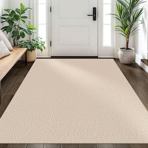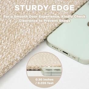 - Detalhes do produto: Tamanho: 4' x 6' (121.9 cm x 182.9 cm); Espessura: Tapete: 0,5 cm; Borda: 1 cm; Cor: Bege/Branco; Material: Algodão + Poliéster. Observação: as bordas dobradas reforçadas (1 cm) para maior durabilidade. Verifique a folga da porta para evitar qualquer obstrução