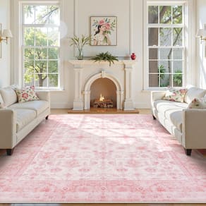 - [Tapete floral macio dobrável]: O tapete lavável 20 x 25 cm dobra sem deixar vincos para facilitar o armazenamento sazonal. Tapete de área grande boho chique e retrô com estampas lindas impressas em pelo curto macio e aconchegante para um toque aveludado. Uma mistura suave de tapete rosa e branco exala tranquilidade e inspira meditação silenciosa