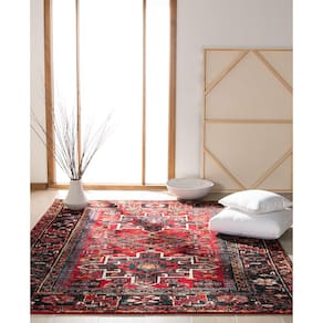 SAFAVIEH Tapete vintage Hamadan Collection – quadrado de 9,5 m, vermelho e multi, design persa tradicional oriental, não solta e fácil de cuidar, ideal para áreas de alto tráfego na sala de estar,