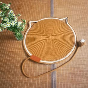 Produzido em corda de algodão trançada com acabamento em linho lavável, é resistente e ideal para servir como arranhador natural, ajudando a manter as garrinhas saudáveis enquanto o pet se diverte e descansa.