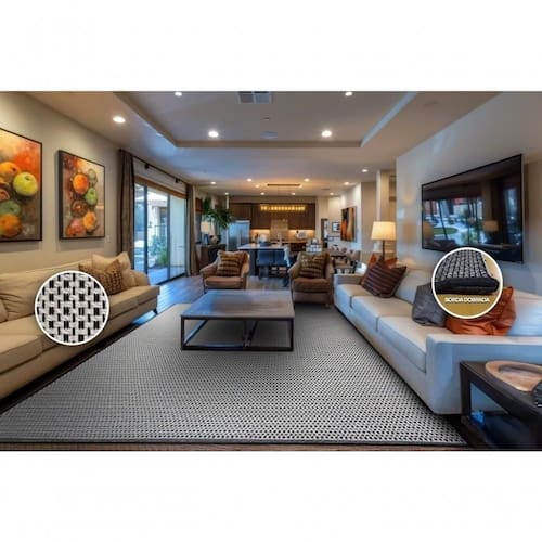 Ficha Técnica Informações técnicas para esse produto Produto Tapete Artesanal Look Qualidade Sisal Jacquard Densidade 320 pontos/m Batidas 550 linhas/m Pelos 352.000 Superfície 100% Polipropileno Poliseda Altura do Pelo Flatweave Base Antiderrapante *Fotos ilustrativas. Variações de cores podem acontecer em diferentes aparelhos/equipamentos. Contraste e brilho são configurados de forma diferente em cada marca de smartphone, monitor e televisão.