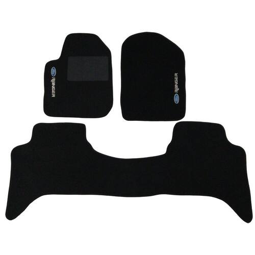 o jogo de tapete carpete produzido pela tapecars possui um design perfeito para o interior do veiculo, ele possui coloração preta, grafia bordada com a logo do veículo e acabamento lateral bordado em