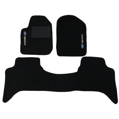 Tapete automotivo carpete somente forração ford ranger jogo de tapete carpete somente forração preto com grafia logo bordado impermeável 5 peças o jogo de tapete carpete produzido pela tapecars possui um design perfeito para o interior do veiculo, ele possui coloração preta, grafia bordada com a logo do veículo e acabamento lateral bordado em este jogo é composto por 5 peças de alta qualidade, sendo as peças do passageiro e do motoristas dotadas com tiras aderentes na parte traseira para garantir a fixação deles. Para garantir a segurança o motorista contará com uma peça que possui pisante em pvc, o que evita escorregões. Cor disponível: preto especificação técnica: fabricado em polipropileno carpete em poliéster grafia igual da montadora somente forração, linha econômica, sem base pvc pisante em pvc no tapete do motorista proteção anti chamas tapete impermeável e lavável bordado lateral fixação dos tapetes do motorista e passageiro com tiras aderentes encaixe sob medida jogo com 5 peças conteúdo da embalagem: 02 tapetes dianteiros 02 tapetes traseiros 01 tapete central importante: garantia de 3 meses. Valor do jogo. Imagens meramente ilustrativas. Não nos responsabilizamos pelo mau uso do produto.