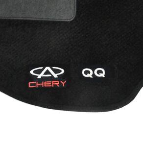 Tapete Automotivo Chery QQ 2011/2012 Carpete Luxo Jogo de tapete linha Luxo carpete com espessura de 11mm na cor preta com base antiderrapante em pvc pinado. Bordado com a grafia e nome, lavável. Jogo com 4 peças.
