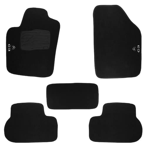 Tapete Automotivo Citroen C3 Em Carpet Linha Luxo Jogo de tapete linha grify luxo carpete com espessura de 11 mm na cor preta com base antiderrapante em pvc pinado. Bordado com a grafia e nome, lavável. Jogo com 5 peças. O jogo de tapete linha grify luxo carpete produzido pela Tapecars, possui um design exclusivo e com acabamento perfeito no seu carro, carpete em pelo alto com 11mm de espessura vem com acabamento nas laterais na cor preta, e com grafia bordada em 3D nos 02 tapetes dianteiros e bordado também no túnel com a grafia da montadora. Vem com tiras aderentes costurado nas duas peças dianteiras para sua maior segurança e melhor fixação do produto. Esse jogo é um produto com excelente qualidade, com 05 peças e o tapete do motorista vem com um pisante em pvc para segurança do motorista, evitando que escorregue. Cor disponível - Preto Especificação técnica do produto - Jogo composto com 5 peças - Carpete de ótima qualidade com 11 mm - Base em pvc pinado antiderrapante - Fabricado em polipropileno - Grafia bordada igual ao da montadora - Pisante em pvc no tapete do motorista - tiras aderentes costurado nas 2 peças dianteiras - Bordado lateral nas 2 peças dianteiras - Bordado no túnel traseiro - Tapete lavável e impermeável - Proteção anti-chamas - Encaixe perfeito e sob medida Conteúdo da embalagem - 02 Tapetes dianteiros - 02 Tapetes traseiros - 01 Tapete central - 03 Meses Importante - Valor do jogo - Não nos responsabilizamos por mau uso do produto - Imagens meramente ilustrativas Marca: Não Informado