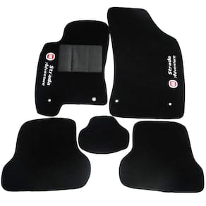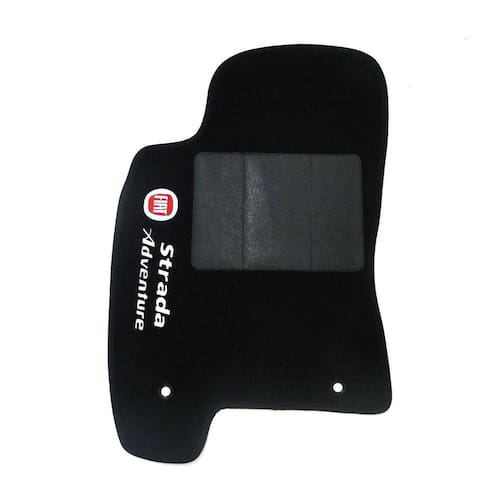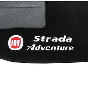 Tapete Automotivo Strada Adventure Carpete Luxo Jogo de tapete linha Luxo carpete com espessura de 11mm na cor preta com base antiderrapante em pvc pinado. Bordado com a grafia e nome, lavável. Jogo com 5 peças.