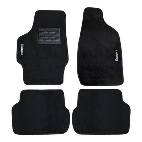 Tapete automotivo Tempra luxo Jogo de tapete linha elithe carpete com espessura de 5mm na cor preta com base antiderrapante em pvc pinado. Bordado com a grafia e nome, lavável. Jogo com 04 peças. O jogo de tapete linha elithe carpete produzido pela Tapecars, possui um design exclusivo e com acabamento perfeito no seu carro, vem com acabamento nas laterais na cor preta, e com grafia bordada em 3D no tapete dianteiros costurado nas duas peças dianteiras para sua maior segurança e melhor fixação do produto. Esse jogo é um produto com excelente qualidade, e o tapete do motorista vem com um pisante em pvc para segurança do motorista, evitando que escorregue. Cor disponível - Preto Especificação técnica do produto - Jogo composto com 04 peças - Base em pvc pinado antiderrapante - Grafia bordada igual ao da montadora - Pisante em pvc no tapete do motorista - Bordado lateral na peças - Tapete lavável e impermeável - Proteção anti-chamas - Encaixe perfeito e sob medida - 03 Meses Importante - Valor do jogo - Não nos responsabilizamos por mau uso do produto Marca: Não Informado
