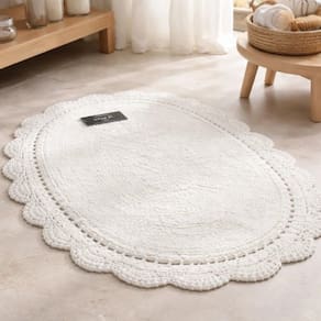 Tapete Banheiro Crochê Oval 50x80 Branco Kacyumara - Informações