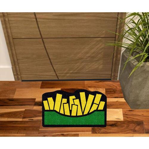 Tapete Capacho Vinil com fibras entrelaçadas e costado emborrachado com arte pinta em tinta vinílica especial.