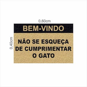 Tapete Bem Vindo Não Se Esqueça De Cumprimentar o Gato Pet. - Cor: Bege