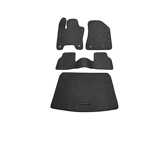 Tapete Compass com traseiro inteiriço e Porta-Malas Anos 2017 a 2022 PVC Frisado Ilhós de segurança para melhor fixação Sem odor Base antiderrapante Impermeável Lavável e de fácil limpeza Bordado em todas as peças Encaixe perfeito no seu veículo Modelo personalizado para cobrir o apoio do pé esquerdo