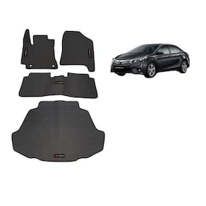Tapete Corolla com traseiro inteiriço e Porta-Malas Anos 2015 a 2019 PVC Frisado Ilhós de segurança para melhor fixação Sem odor Base antiderrapante Impermeável Lavável e de fácil limpeza Bordado em todas as peças Encaixe perfeito no seu veículo Modelo personalizado para cobrir o apoio do pé esquerdo
