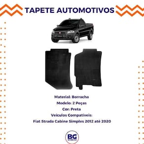 Tapete de Borracha para Fiat Strada Cabine Simples 2012 até 2020 2 Peças -marca: Carfloor -código do Fabricante: D0750 -modelo: 2 Peças 02 peças dianteiras -material: Borracha -cor: Preto -jogo de tapete borracha