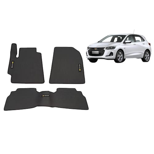 Tapete Onix Hatch Premier Turbo com traseiro inteiriço Anos 2020 a 2023 PVC Frisado Sem odor Base antiderrapante Impermeável Lavável e de fácil limpeza Bordado em todas as peças Encaixe perfeito no seu veículo Modelo personalizado para cobrir o apoio do pé esquerdo