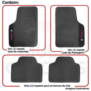 Tapete Borracha Peugeot 106 206 306 405 406 504 605 Bordado Com acabamento na cor preta, produzido com material altamente resistente, com belo bordado, Este Jogo de Tapete protege o assoalho do veículo e pode ser lavado, pois ele é totalmente reciclável e ecológico, Além das bases e superfícies antiderrapantes. Feito sob medida para o seu veículo. Jogo de Tapetes para a Linha Peugeot com Bordado. CARACTERÍSTICAS - 100% Policloreto de Vinila - Anti-Alérgico - Sem Odor - Maior Durabilidade - 100% Reciclado e Ecológico - - Cor: Preto Fosco - Marca: Aladin DIMENSÕES Dianteiro: 66 cm x 47 cm x 0,5 cm Traseiro: 38 cm x 47 cm x 0,5 cm INSTALAÇÃO A instalação é feita de forma simples, podendo ser feita por você mesmo. de 30 dias para defeitos de fabricação. SOBRE O ENVIO Envio podendo ser feito até o próximo dia útil após confirmação de pagamento. em até 3 , em caso de boleto POLÍTICA DE TROCA Sempre estamos interessados em sua satisfação. Caso não receba o produto exatamente como no anúncio, com algum defeito ou no transporte, Você poderá trocar e devolver a qualquer momento, sem pressa, sem prazo e principalmente sem custos desde que o produto esteja sem uso e na mesma condição da data da compra . No caso de devolução por compra de tamanho errado, desistência ou mudança de intenção, Neste caso o cliente deve arcar com o custo da devolução da mercadoria e nós arcamos com o custo de reenvio Da mercadoria nova. Marca: Não Informado