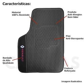 Tapete Borracha Renault Clio Sandero Logan Symbol Bordado Com acabamento na cor preta, produzido com material altamente resistente, com belo bordado, Este Jogo de Tapete protege o assoalho do veículo e pode ser lavado, pois ele é totalmente reciclável e ecológico, Além das bases e superfícies antiderrapantes. Feito sob medida para o seu veículo.